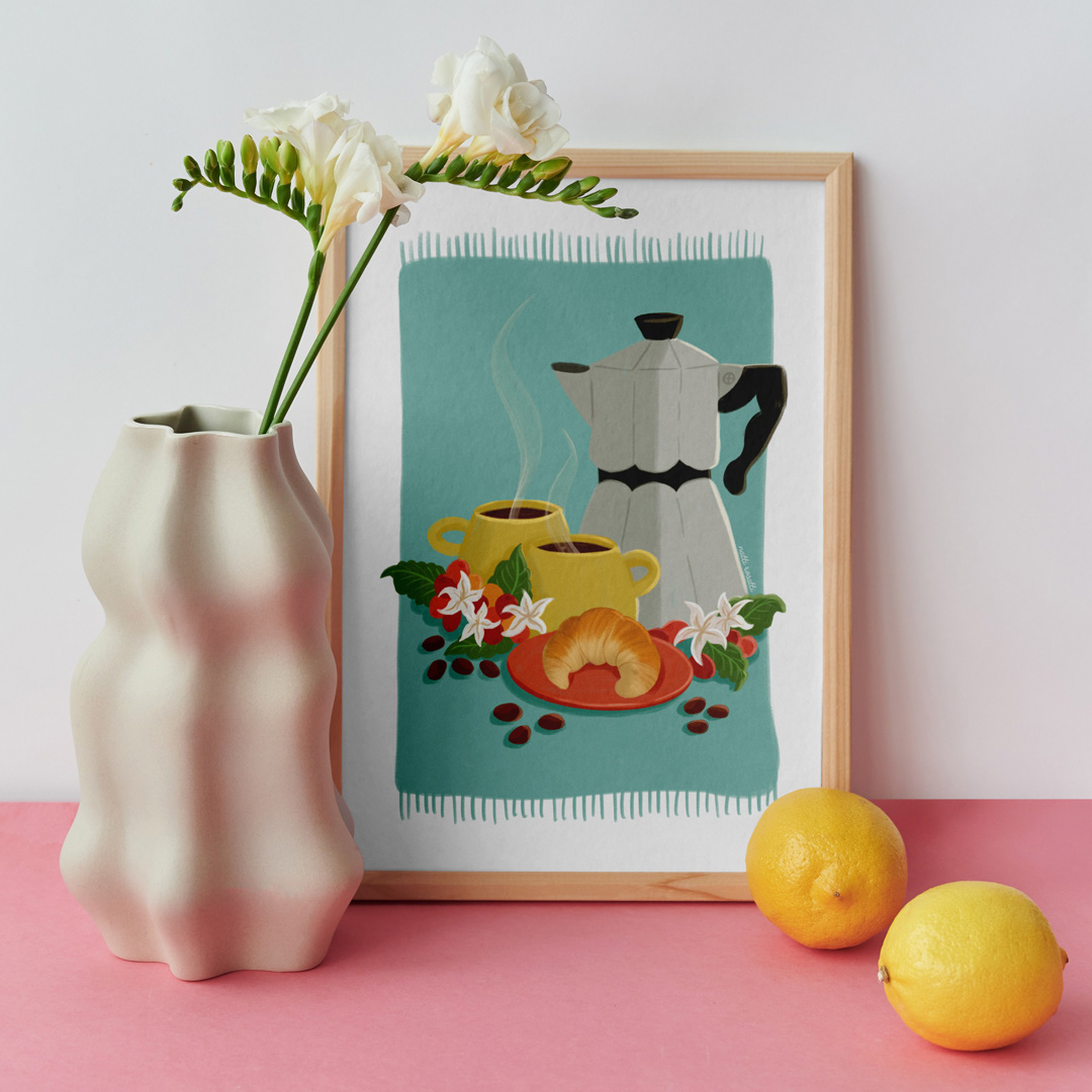This collection started as a commission and quickly became a personal passion project. Each piece celebrates the simple joys of food and drink, blending kitchen essentials with the beauty of nature. Featuring beloved beverages and dishes paired with the flowers of their key ingredients, these illustrations are perfect for adding warmth and charm to your kitchen or living space.